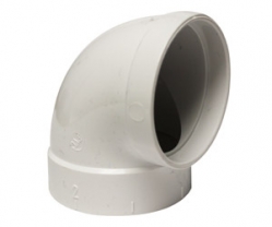 90° Short Elbow with Short Socket Installed on the back spigot of a mounting plate to connect with the piping system, the 90° Extra Short Elbow is designed for use with 2" x 3" walls.